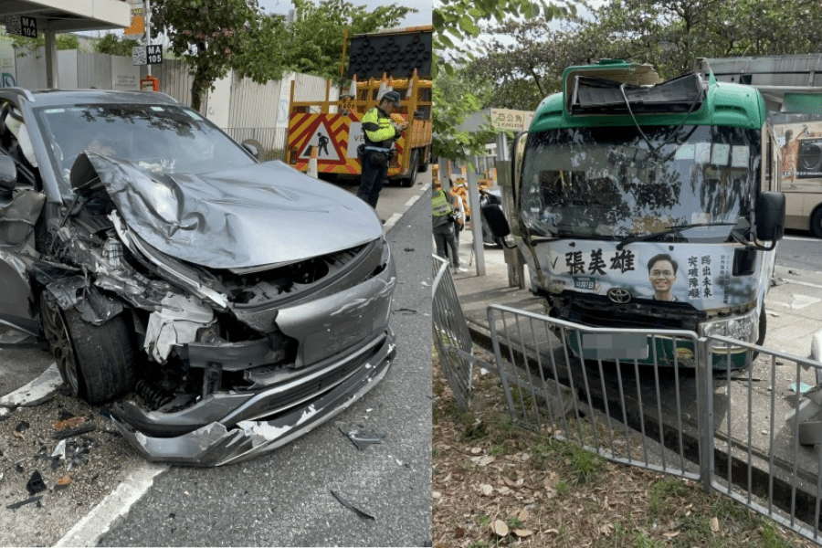 Head-on collision in Sha Tin sends minibus onto pavement, 7 injured
