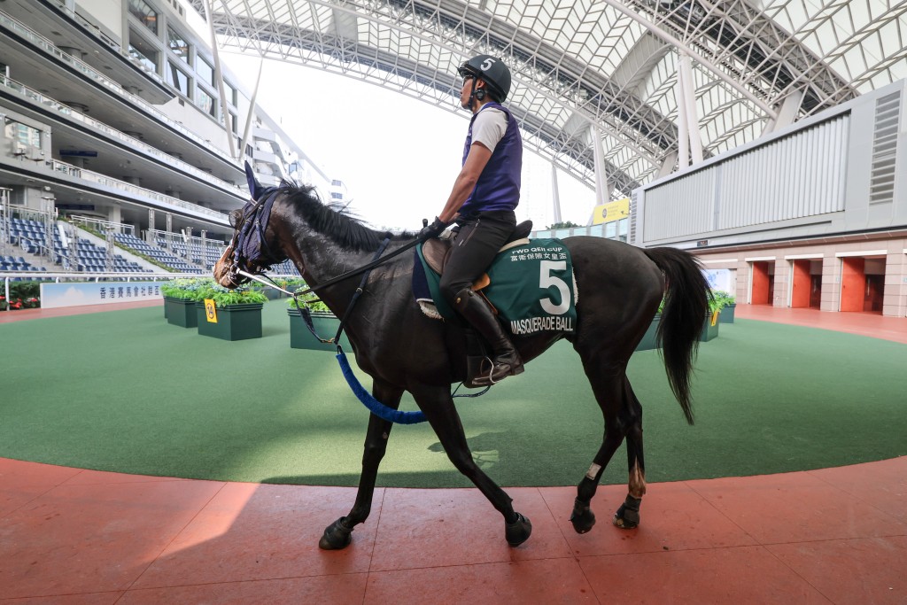 Masquerade Ball made an appearance at morning trackwork today, completing paddock schooling — a familiarization exercise in Sha Tin's pre-race parade ring designed to reduce race day stress ahead of the HK$30 million feature.