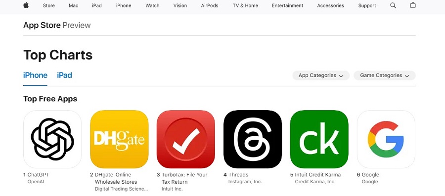 A Chinese e-commerce application has rocketed to the top of free iPhone apps in the US App Store – just after ChatGPT – bolstered by China-made products winning over American consumers on TikTok against the backdrop of an escalating Sino-US tariff war, according to US media TechCrunch.