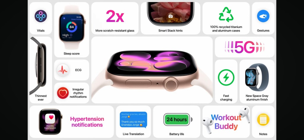 The company showcased new health and safety features, including a hypertension alert on the Series 11 and satellite connectivity on the Ultra 3.
