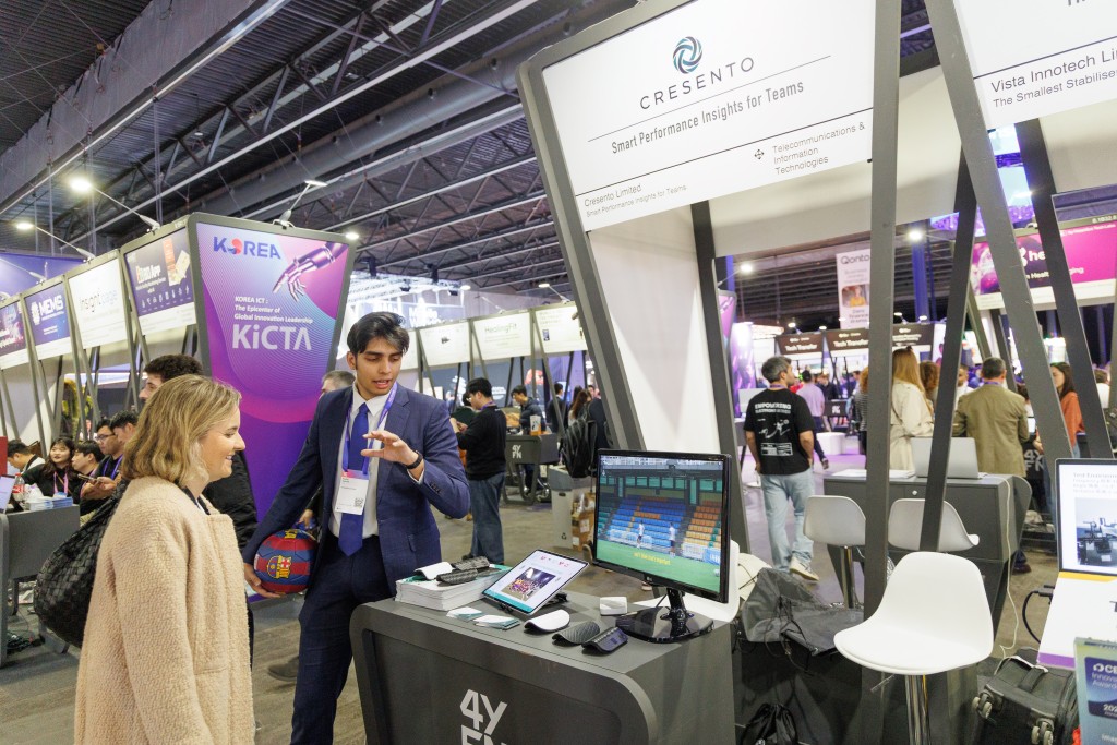 Among the exhibitors was Cresento, a sports tech start-up founded by university students. The company presented an AI-powered shin guard designed to track player performance and predict fatigue.