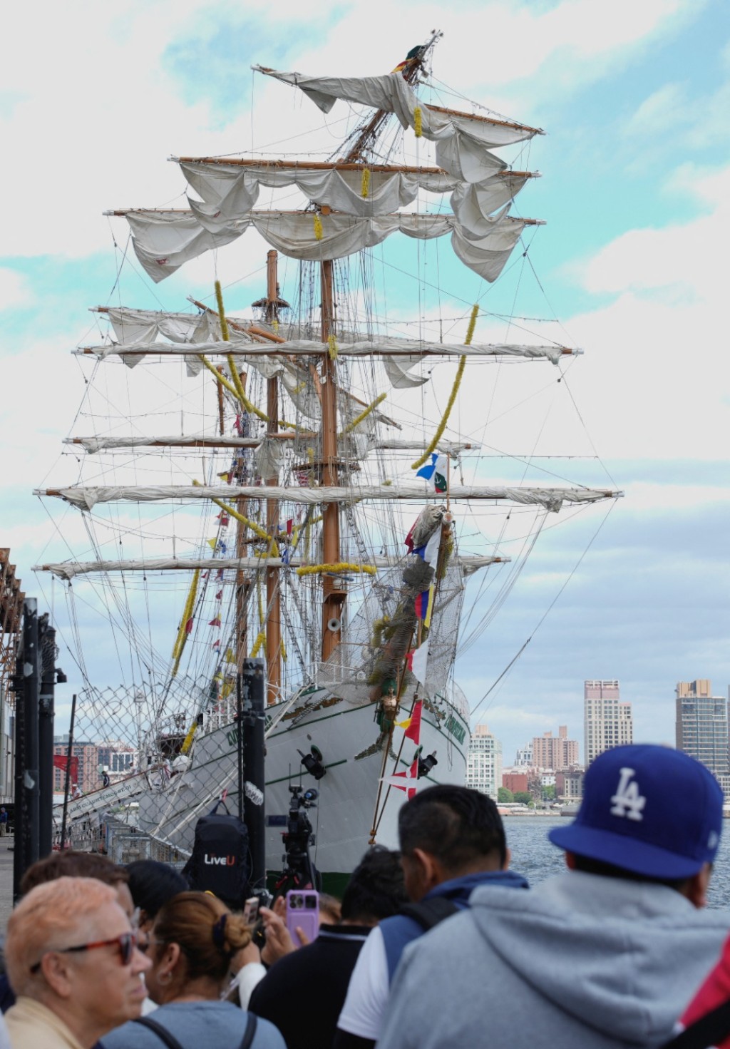 The Mexican training ship Cuauhtemoc, launched in 1982, is 90.5 meters long and 12m wide. It has three tall masts with up to five layers of sails. At the time of the incident, it was carrying a crew of over 200. It was leaving the South Street Seaport in Manhattan to sail to her next destination, Iceland.