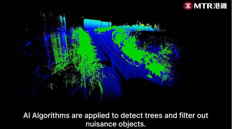 LiDAR units mounted on these vehicles automatically gather data, including tree height, shape, and distance from the light rail operating area. Application of AI technology helps to assess the risks of tree encroachment and generates alert signals to inform the tree management team to facilitate early inspections.