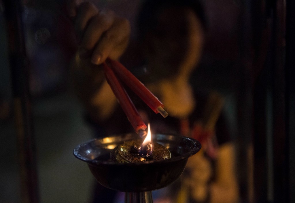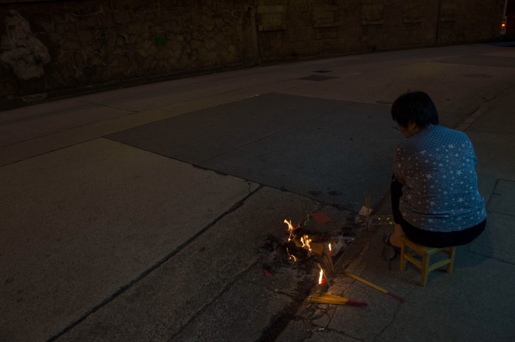 Incense sticks burn late into the night, while joss paper, fashioned into the shape of money, clothing or even the latest electronics, is burned as an offering to the afterlife.
