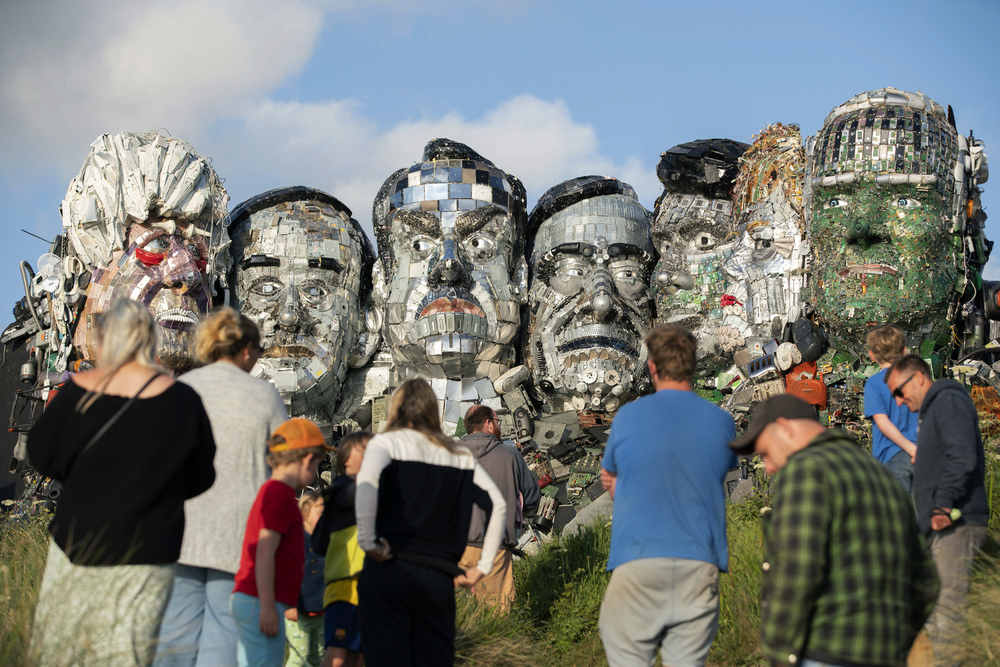 Visitors to Cornwall, England, in June take in Mount Recyclemore, artist Joe Rush's attempt to get G7 leaders to tackle e-waste with his Mount Rushmore update.