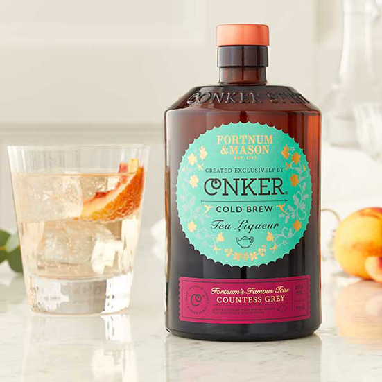 Distilled in traditional copper pot stills at Conker Spirit Distillery in Dorset and blended with Fortnum's signature Countess Grey black tea, the resulting liqueur with its bergamot and orange notes is best enjoyed in a champagne cocktail, served long with soda and a peach wedge, or over ice for an after-dinner tipple at home.