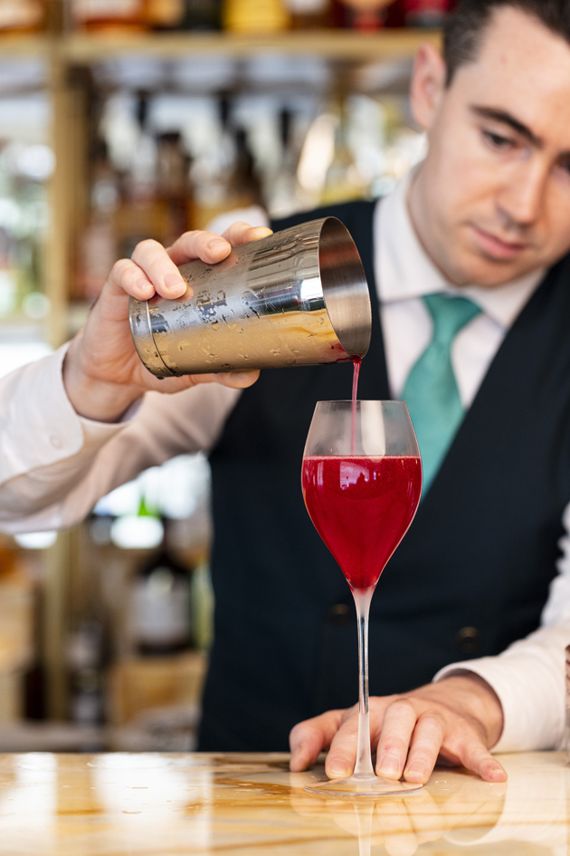 All you have to do is add ice into the glass, shake and pour the cocktail, then garnish.