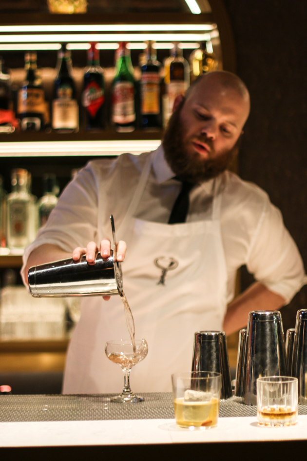 Boulevardier (HK$600), a cocktail with origins in Harry's New York Bar in Paris, features a classic combination of Wild Turkey rye, bourbon, Punt e Mes vermouth and Campari bitters. One of its latest cocktail creations, the Blinker Highball (HK$600), is a fruity and balanced mix of bonded raspberry rye, Austrian bitters, unripe grapes, celery and grapefruit soda.