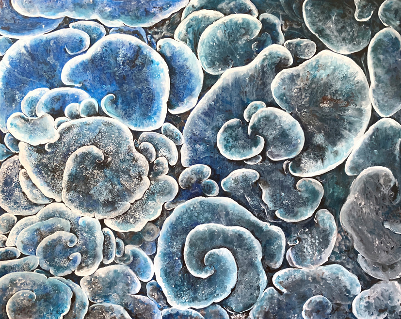 Also part of the ongoing underwater motif are the acrylic paintings Under the sea (2020) and Corals (2020). The underwater seascapes are currently on display in group show +VE/-VE in Kwun Tong until September.