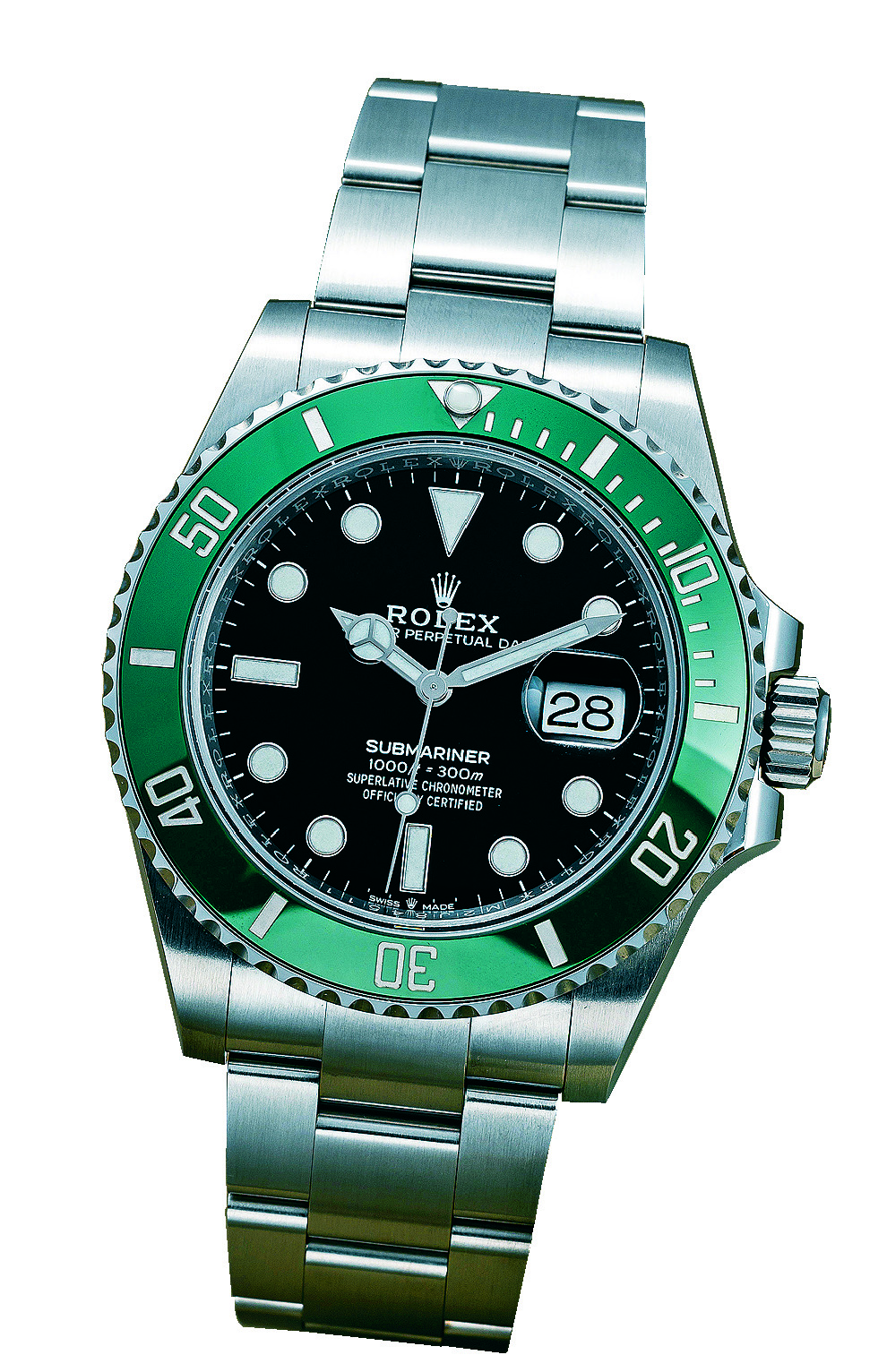 Decades later, the Oyster case, Cerachrom bezel and solid-link Oyster bracelet of this year's Submariner have not deviated much from its predecessors - at least to the eye - though the case has expanded by a millimeter to 41mm, and the watch lugs have become slightly narrower. As a result of the smaller lugs, the bracelet is also 1mm wider.