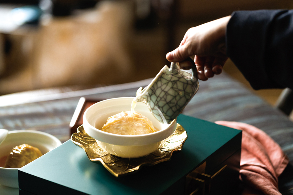 Conclude your meal with delectable desserts such as Tofu Chrysanthemum in Sweetened Ginger Soup, or Double-boiled Peach Resin with Ginseng and Red Dates.