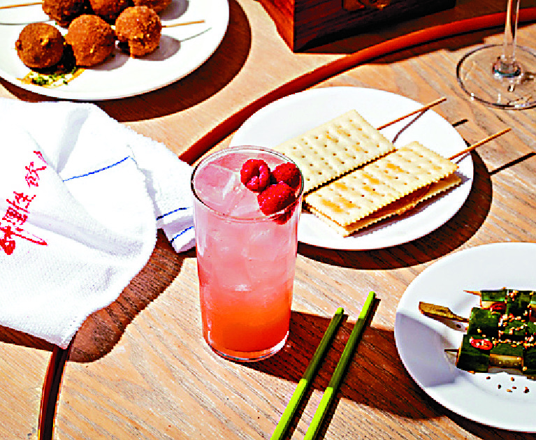A cocktail menu at the alfresco dining area might appeal to all. Featuring Yanagita Senbouzakura, lemon, and soda, Hana-Hana shochu highball (HK$98) is a refreshing experience with every bite.