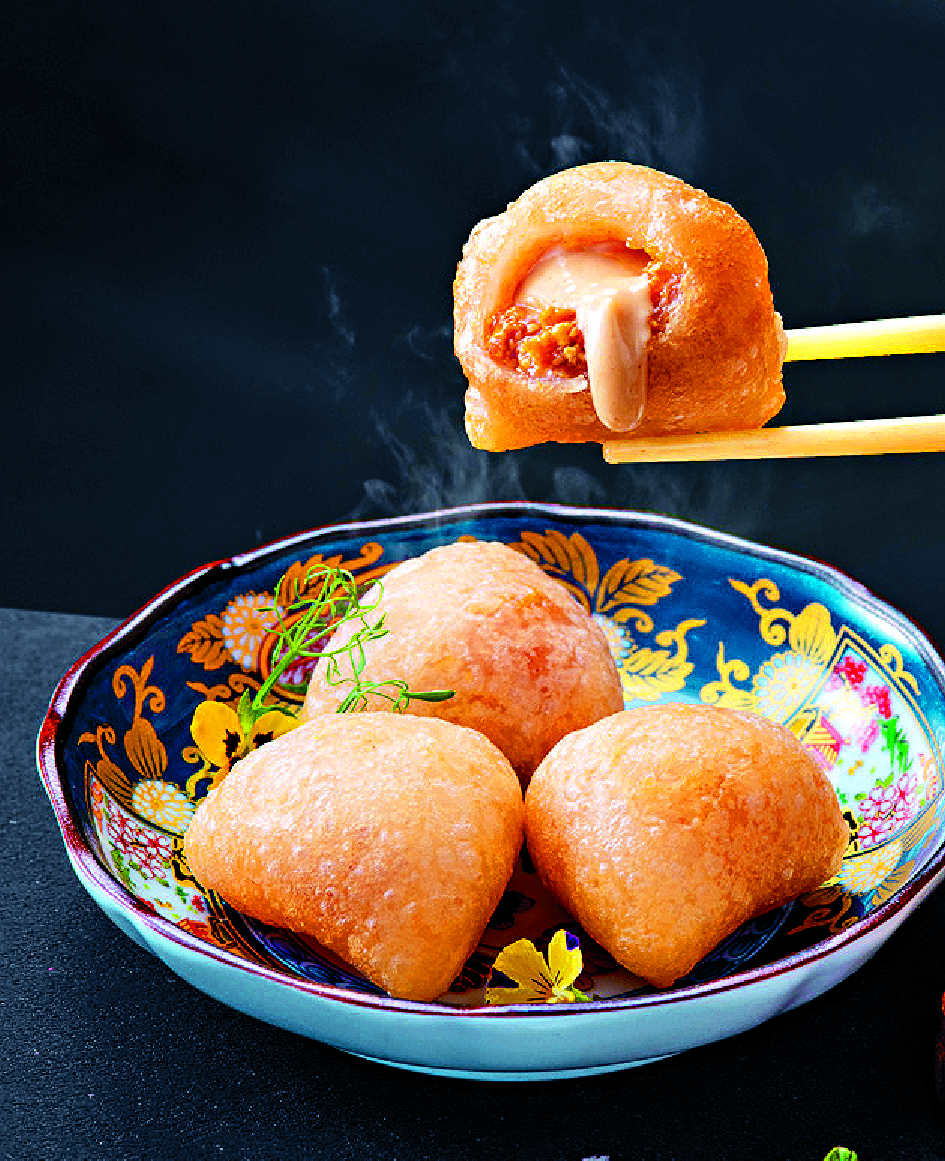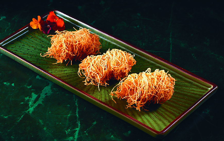 New takes on classics include steamed pork and prawn dumplings topped with runny quail egg and black truffle sauce (HK$78) and deep-fried pastry dumplings with caramelized peanut.