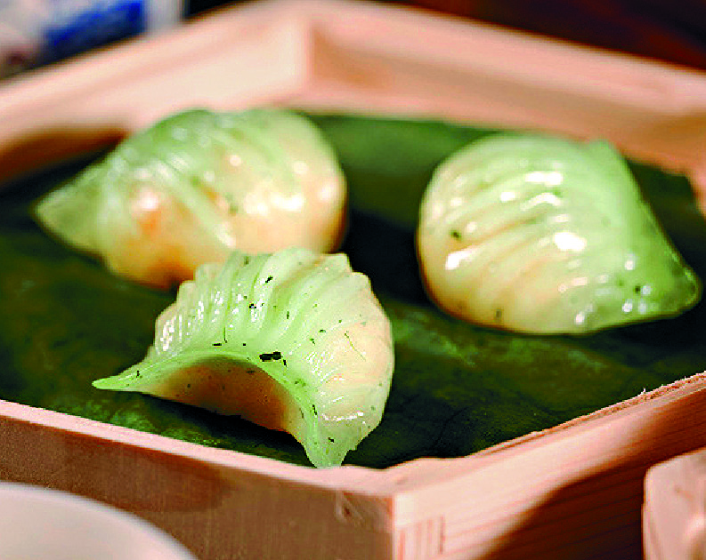 Its tea-infused dim sum creations include Longjing tea har gau (HK$78), in which the shrimp dumplings come with green-hued skin and speckled with tea leaves.