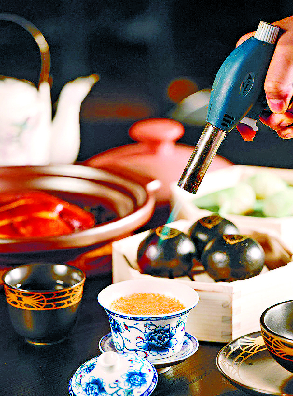 Among the menu highlights is steamed rock rice. Made from a prized healthful plant, it has no starch and resembles Spanish paella rice in texture and absorbs rich flavors. It is served with garoupa fillet and preserved vegetables aged for 25 years.