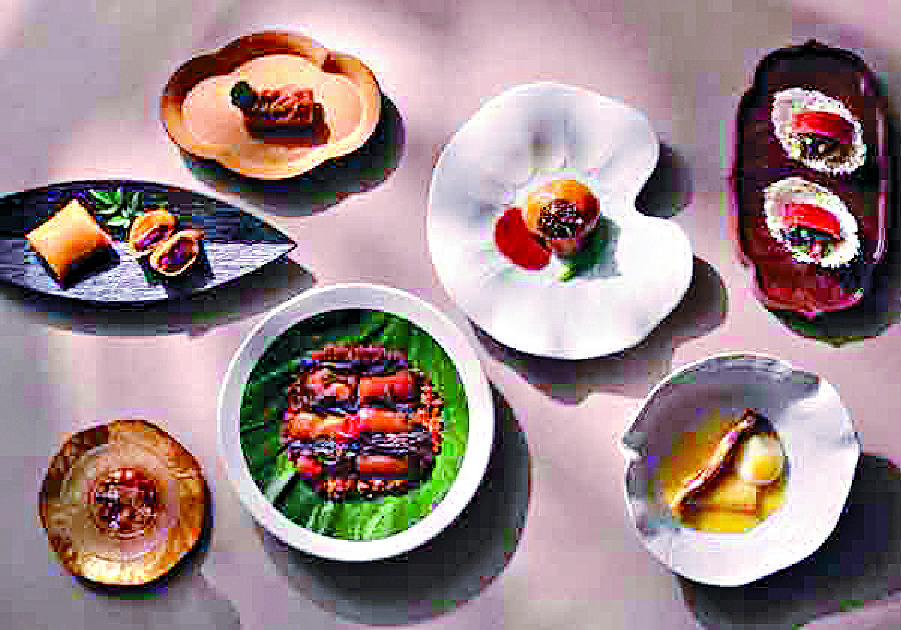 Other standout dishes are deep-fried stuffed Alaskan king crab meat with snow swallow, filled with morels, crab meat, and Yunnan ham, and bamboo fungus roll in Chinese lychee mushroom soup, which includes bamboo fungus stuffed with shrimp and vegetables in a flavorful broth.