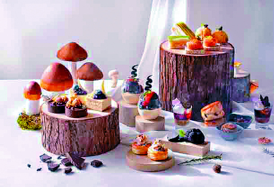 At MoMo Cafe's Mushroom and Cocoa Delights Buffet (from HK$368, you can enjoy mushroom-based salads such as spicy king oyster mushroom salad and roasted portobello salad. Meat lovers can savor braised beef ribs with truffle sauce, roasted chicken fillet with porcini cream, and roasted Australian grain-fed beef striploin.