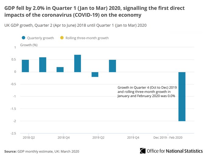 UK economy contracts by 2pc in first quarter