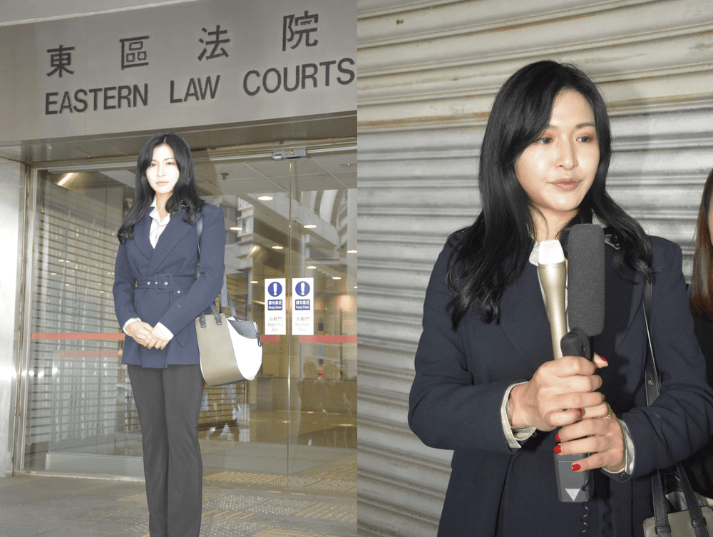 Television actress Vicky Chan outside the Eastern Magistrates' Courts. (Sing Tao photo)