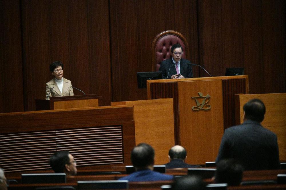 Several pan-democratic lawmakers including the Civic Party’s Kwok Ka-ki, Council Front's Chu Hoi-dick and People Power's Ray Chan were ordered to leave the meeting after repeatedly interrupting Lam.