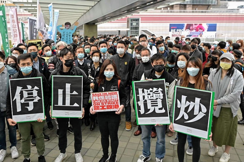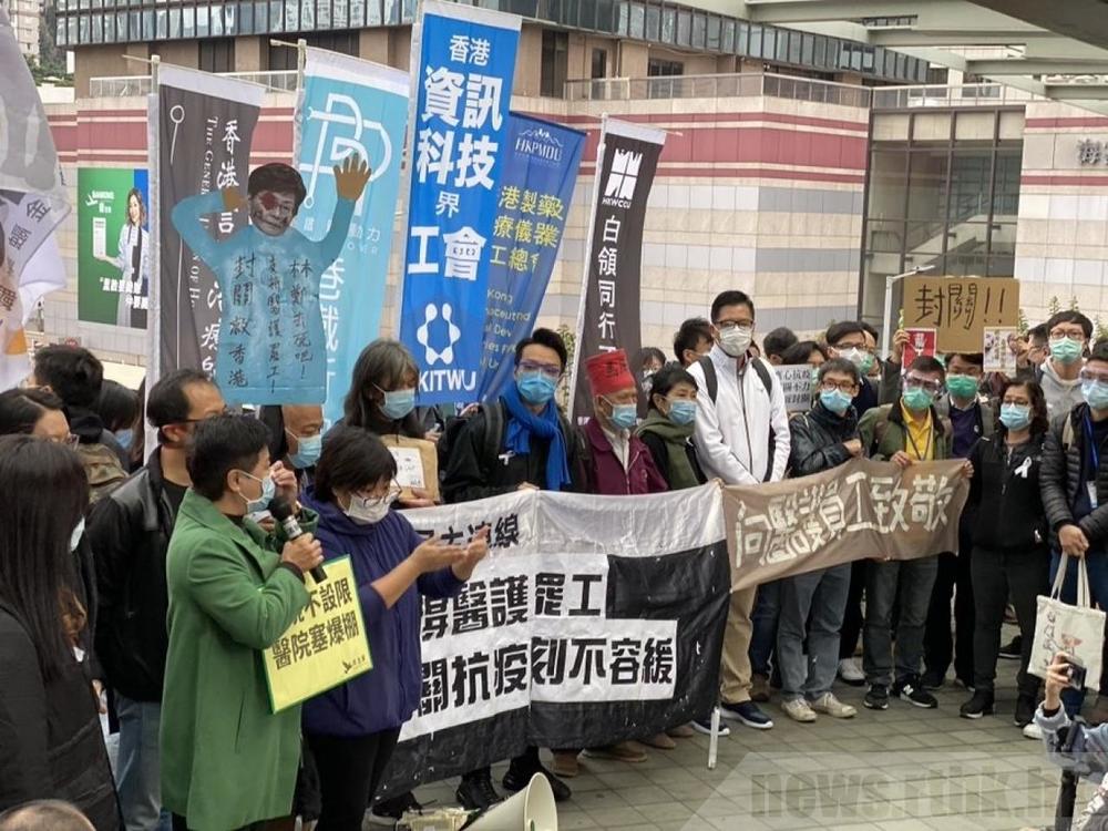 Several striking hospital employees and opposition lawmakers rallied to demand Chief Executive Carrie Lam Cheng Yuet-ngor discuss their demand to shut down all land border crossings with the mainland to prevent a wide outbreak of coronavirus in the city, RTHK reports.