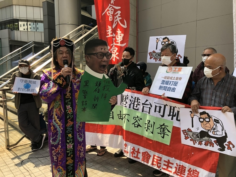 Members of the Labour Party and the League of Social Democrats protested outside the Police Headquarters in Wan Chai today, accusing Police Commissioner Chris Tang of launching an attack on public broadcaster RTHK and interfering with press freedom, RTHK reports.