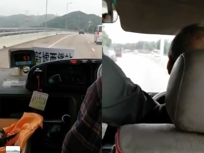 A passenger opens the door trying to force the driver to stop the Route 44A bus plying from Yuen Long to Tuen Mun in the nearly 2 minute clip seen on social media. He was arrested by police later.