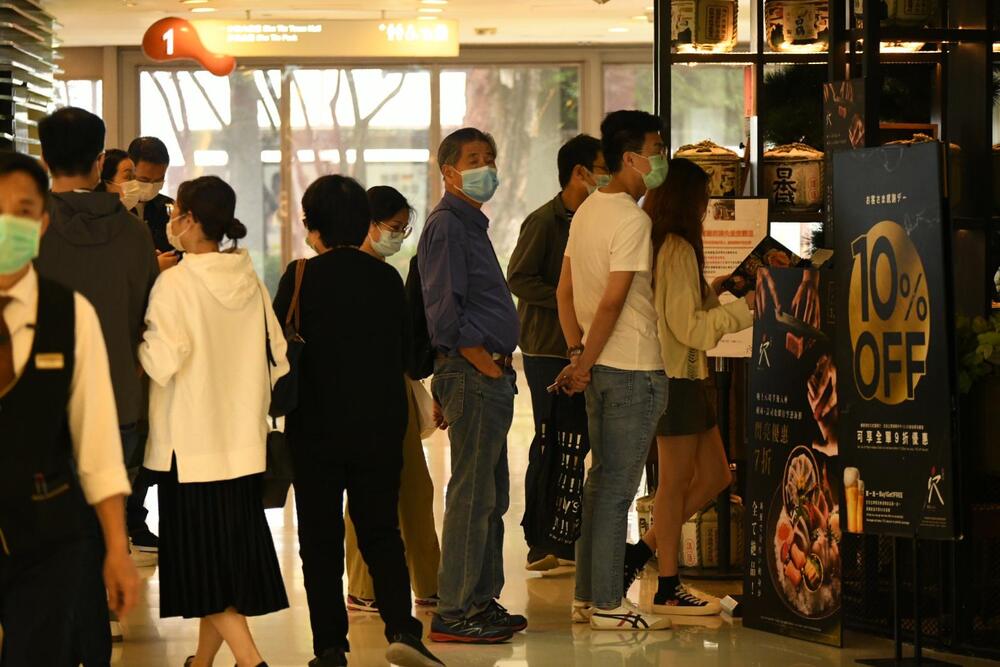 At lunchtime in Sha Tin's New Town Plaza, people were seen lining up outside restaurants, which imposed body temperature checks.