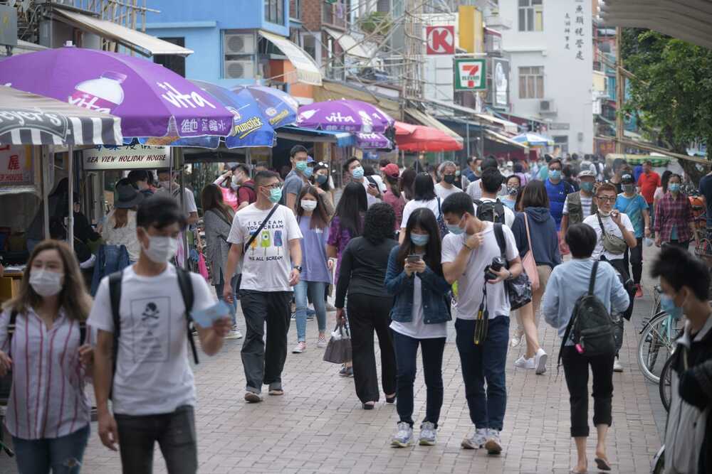 Many families and individuals were seen shopping and dining, and outdoors, in Sha Tin, Tai Po, Mong Kok and Cheung Chau's beaches and streets.