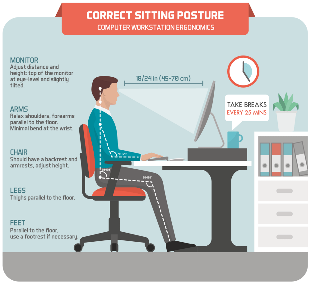 Incorrect posture will lead to fatigue, discomfort and even pain that may later on develop into repetitive strain injuries or chronic musculoskeletal disorder. By having a proper ergonomic setup, efficiency and productivity can be improved. It can also reduce unnecessary stress and the risks of having headache, eyestrain, back pain, or neck pain.