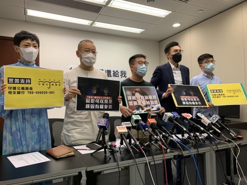 Several pro-democracy figures launched a crowd-funding bid today as they seek to overturn the five-year ban on running for office for anyone given jail terms of three months or more, RTHK reports.