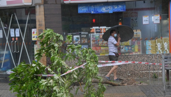 The winds prostrated a six-meter high tree at the housing estate, rubbish trash was seen all over the street in the district.