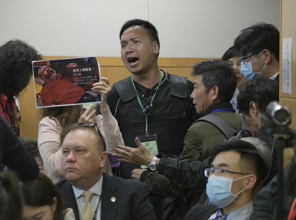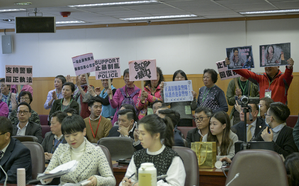 Council chairwoman Cheng Lai-king of the Democratic Party kicked out police supporters who shouted and clapped their hands during the meeting.