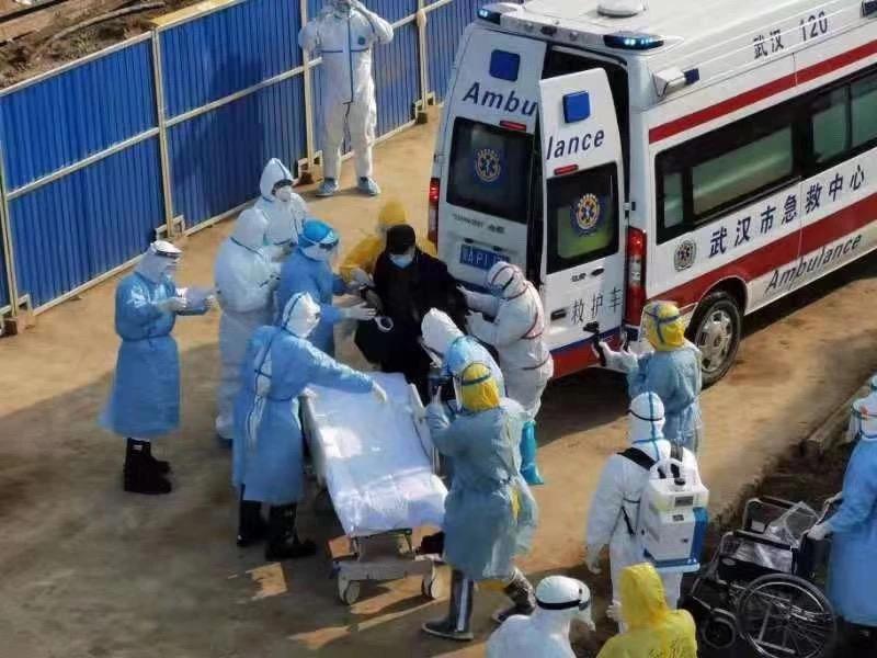 The first batch of coronavirus patients were admitted to Huoshenshan Hospital in Wuhan yesterday morning as the number of confirmed cases in the city hit 6,384.
