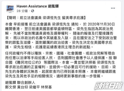 Haven Assistance, a group found by activists in exile, said Leung is facing “profound political persecution” in Hong Kong.