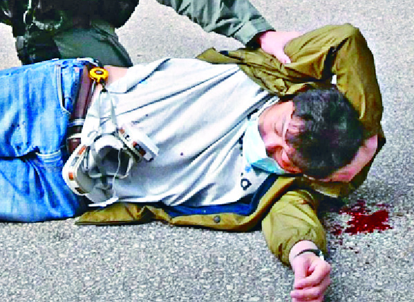 A middle-aged man was bleeding from a head wound after he fell unconscious, and protesters claimed he had been hit by police. And after he was taken away a large bloodstain marked the spot where he fell.