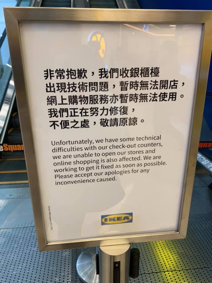 Swedish furniture giant IKEA stores in Hong Kong suspended services for a day, their online website was also unavailable.