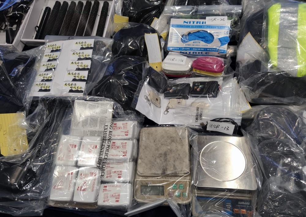 Officers from the Organized Crime and Triad Bureau rounded up a 42-year-old man outside Block 6 of Wing Fok Center on Luen Chit Street in Fan Ling at around 2pm yesterday, where he was found to be carrying a suitcase with chemicals and electronic devices.