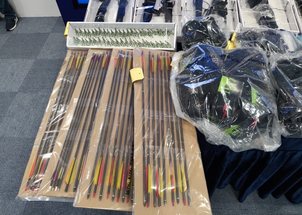 Bows and arrows, expandable batons along with political flyers were seized from the unit. The owner of the unit, aged 62 years, was also arrested.