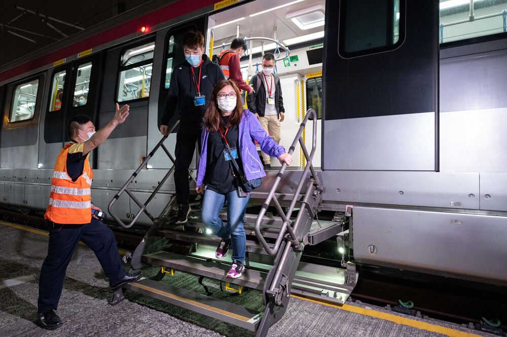 Meanwhile, the train lost traction power and stopped in the tunnel, with “passengers” on board evacuated via a detrainment ladder and guided by station staff to walk through the tunnel to Hung Hom station.