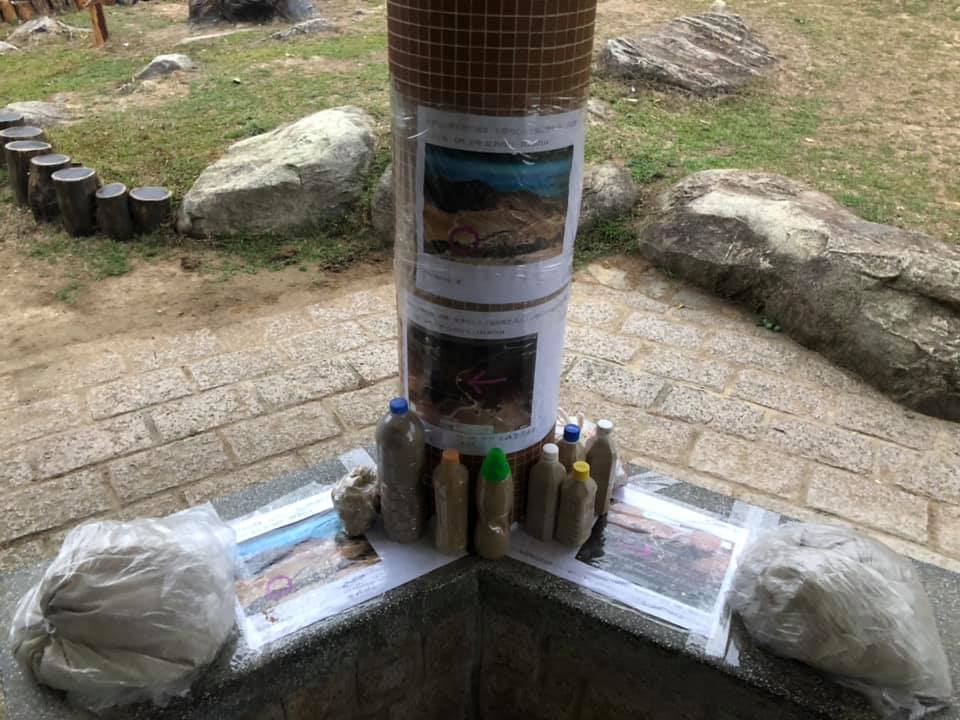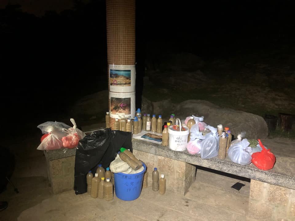 There were too much materials needed for maintenance and they weighed heavily. Therefore Walker Sunsetpeak packed the sand in bottles and cement and adhesive in bags, and then placed it at a gazebo at Pak Kung Au in Lantau Island.