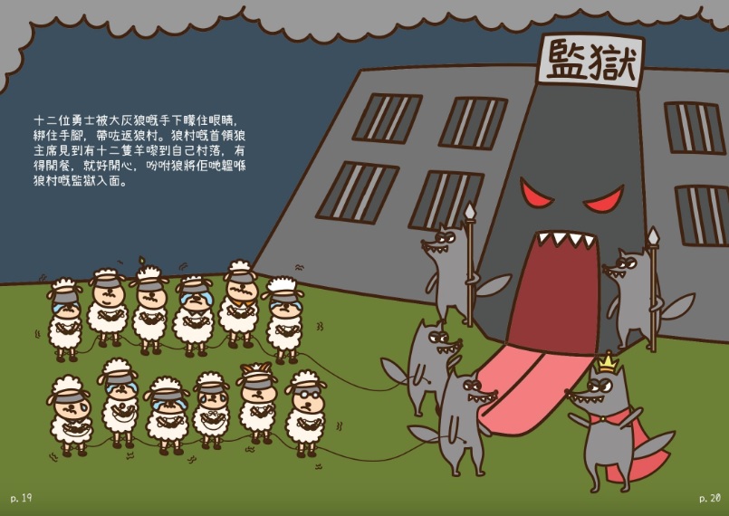 One of the children’s comic books which illustrates the story of 12 sheep surrounded by fierce wolves was alleged to have incited children’s hatred towards the government and on the city’s judicial system, advocating violence.