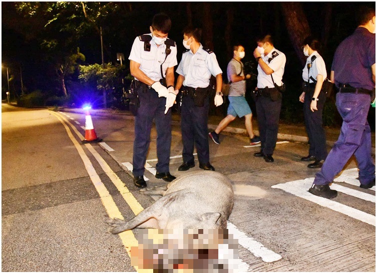 Investigation suggested that the boar was hit by a private car, which had pulled over as well. The 24-year-old driver surnamed Tse was not hurt. He didn't drink or use any drug.