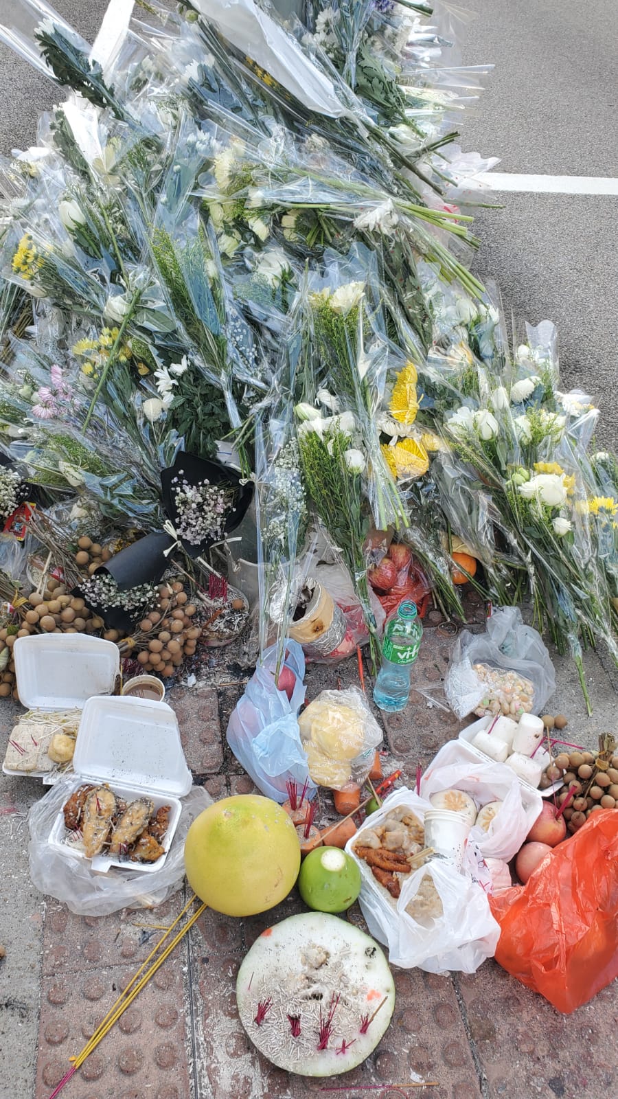 Citizens kept coming and left flowers at the site to express condolences. Police also arrived at the scene. Officers cordoned off the road around 4pm, allowing families of the deceased to stage a Chinese ritual.