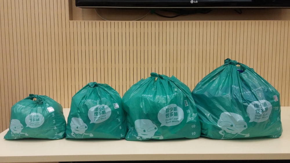 According to the law, residents will have to pay for bags for their rubbish. There are nine sizes of bags, from the smallest bag, which three liters, to the largest, which is 100 liters, meaning the price of a 10-liter bag will be HK$1.10.
