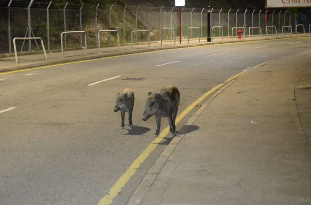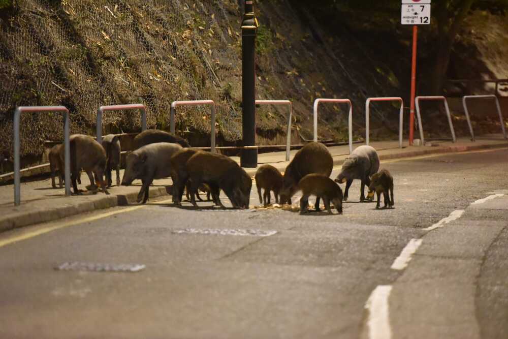 Another report was filed at 7 pm, saying at least five wild boars were finding food around the hill at Shum Wan Road.