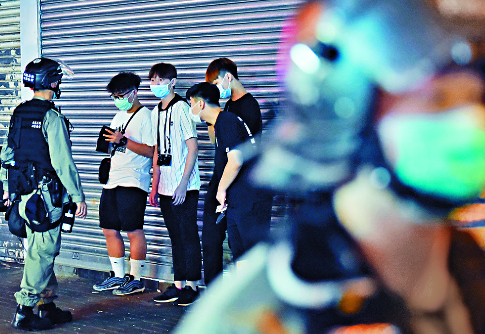 Riot police began checking pedestrians in the district from 8pm on Tuesday. At a minibus station in Fung Cheung Road, more than 10 people were frisked, including two children.