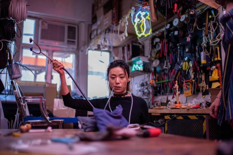 "Because I fell in love with this medium, I tried to do it myself, so I begged Master Wong and other neon benders in Hong Kong, but they refused teaching me," she recalled.