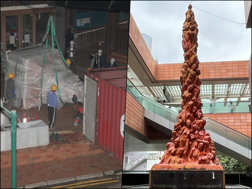 The Council of the University of Hong Kong had "Pillar of Shame," a statue that commemorates the Tiananmen Square massacre, removed from the campus on Wednesday evening, saying displaying the sculpture poses legal risks to the school.