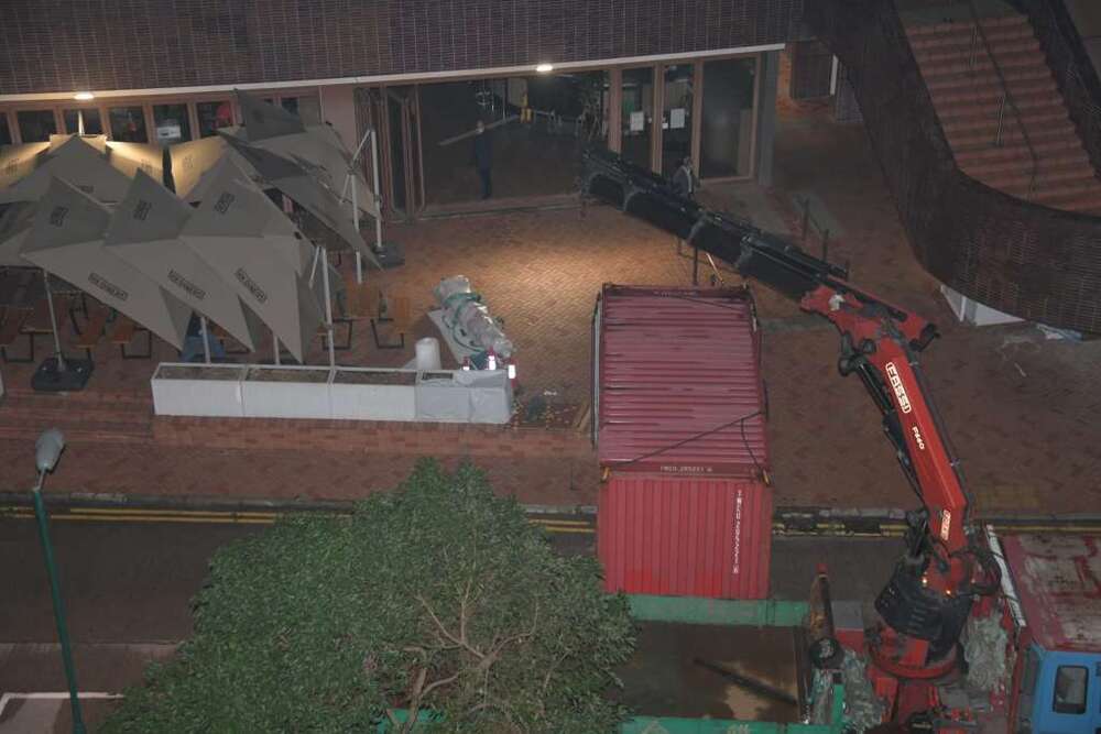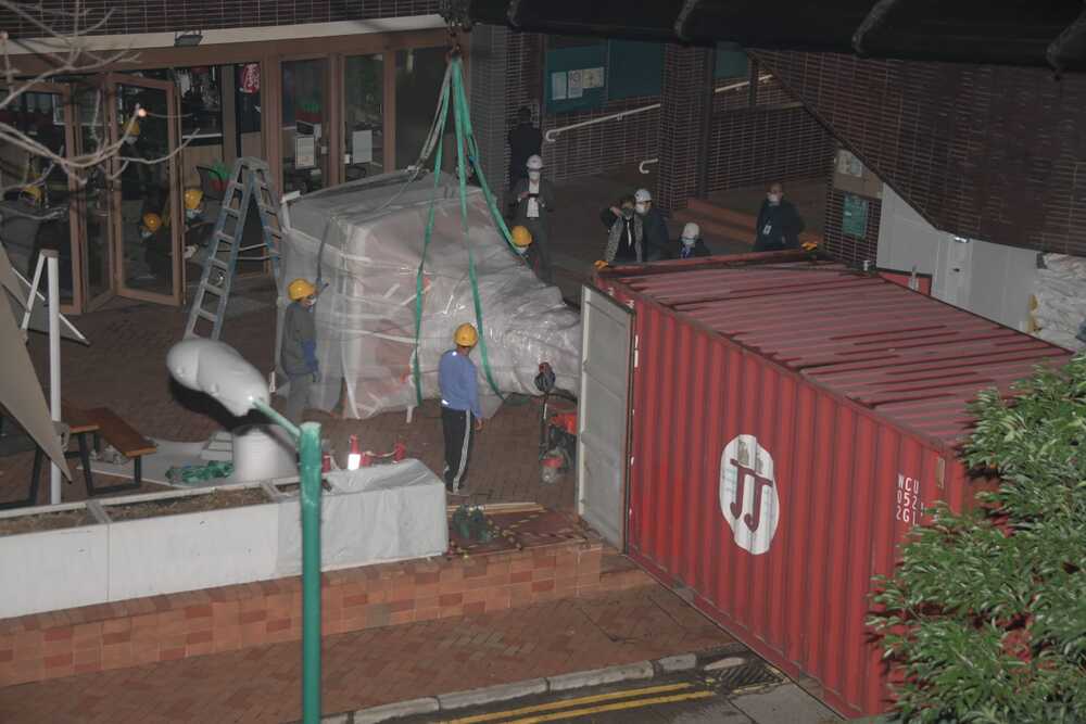 The statue, covered in a large white cloth, was sent to HKU Kadoorie Centre in Shek Kong on Thursday morning.